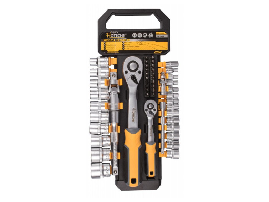 Gola sada 1/2" a 1/4" s nástrčnými klíči a bity, 50 dílů - HT202002 - Hoteche
