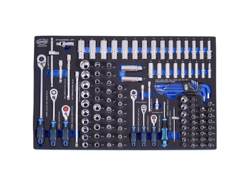 Gola sada 1/4" a 3/8" 121 ks ve výplni dílenského vozíku - LIACKE38102