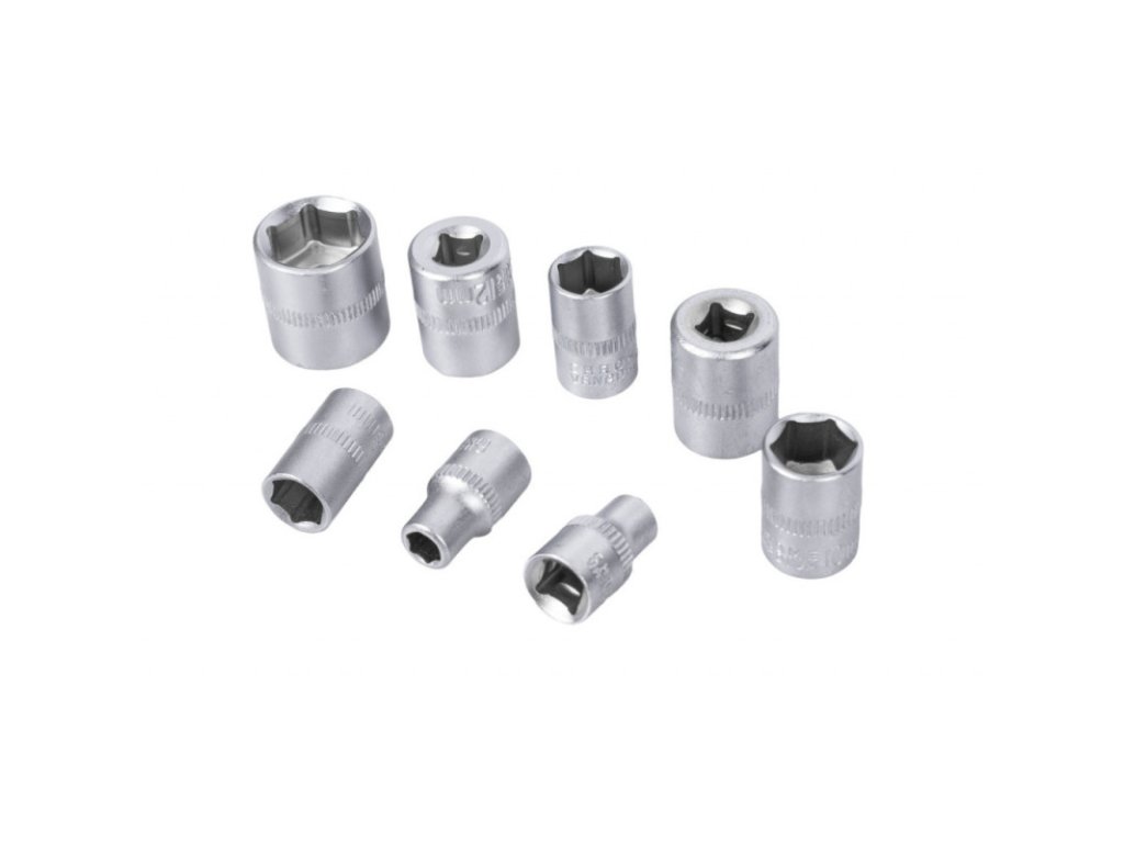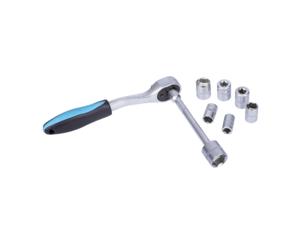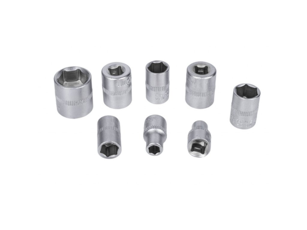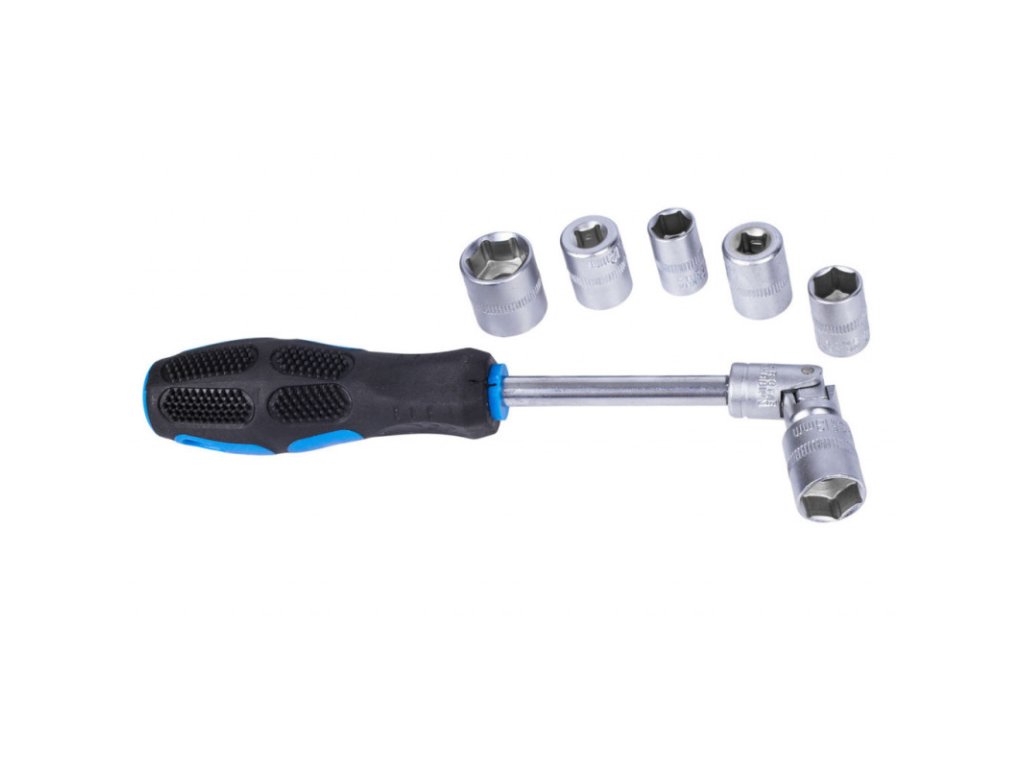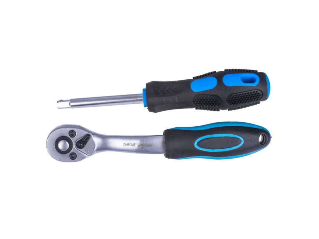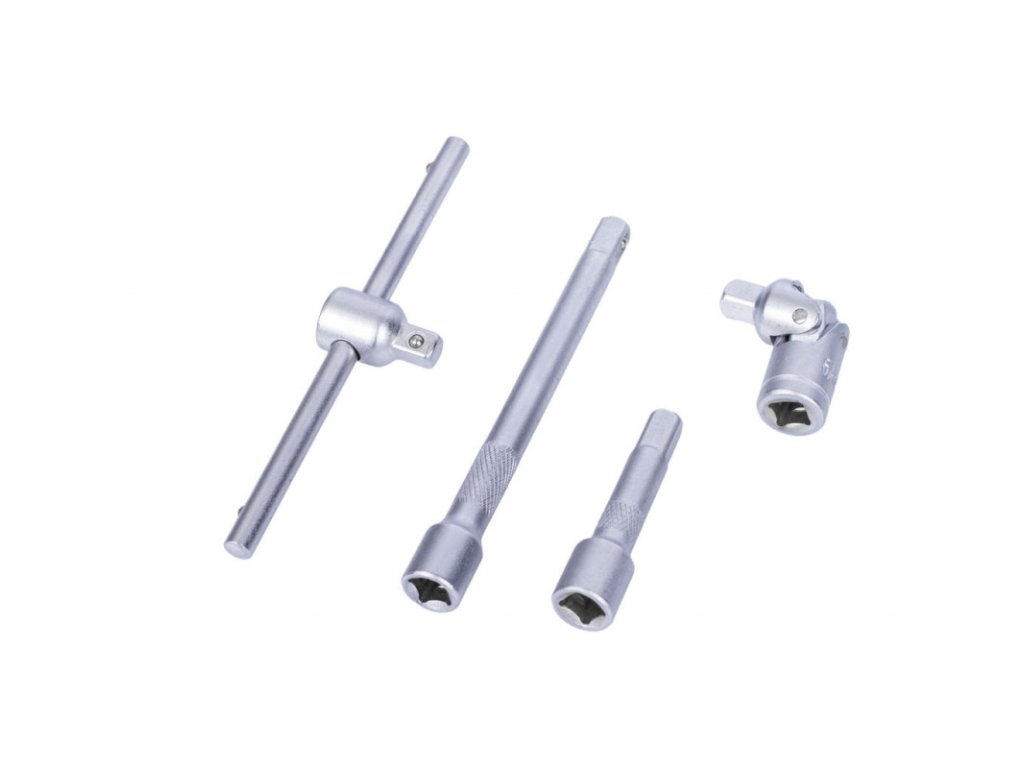 Gola 1/4". Vratidlo, kardanový kloub, prodlužovací nástavec 2ks, šroubovák na nástrčné klíče. 13 ks nástrčných klíčů.