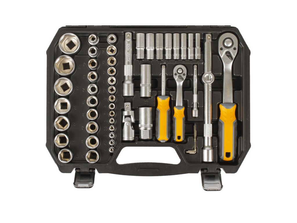 Gola sada 1/4" a 1/2" v praktickém plastovém kufříku, díky kterému sadu snadno přenesete. Díky ergonomickému tvaru rukojeti padnou ráčny se šroubovákem dobře do ruky a docílíte tak pevnějšího úchopu. Rukojeť je navíc vyrobena z protiskluzových materiálů (kombinace plastu a gumy).