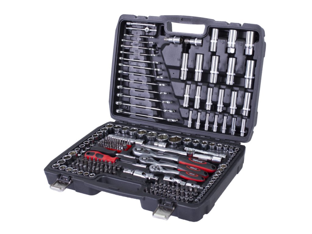 Sada nářadí v kufru s golou je vhodná do každé dílny. Gola sada obsahuje všechny tři běžně potřebné ráčny, tedy ¼", 3/8" a ½" a k nim odpovídající příslušenství v podobě klasických nástrčných klíčů, navíc prodloužených ořechů, nástrčné klíče na svíčky, hlavice s bity, očkoploché klíče apod. (viz podrobný popis). Všechny tři ráčny mají jemný krok 72 zubů pro přesnou práci i v omezeném prostoru.