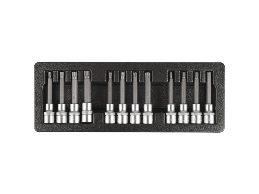 Sada 12 ks profesionálních hlavic s bity TORX a Imbus a tisícihran se čtyřhranem 1/2" ve výplni pro nejnáročnější použití.