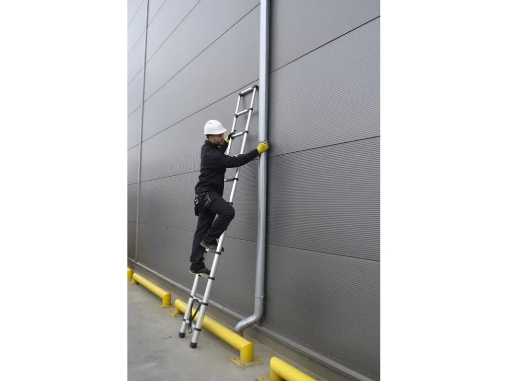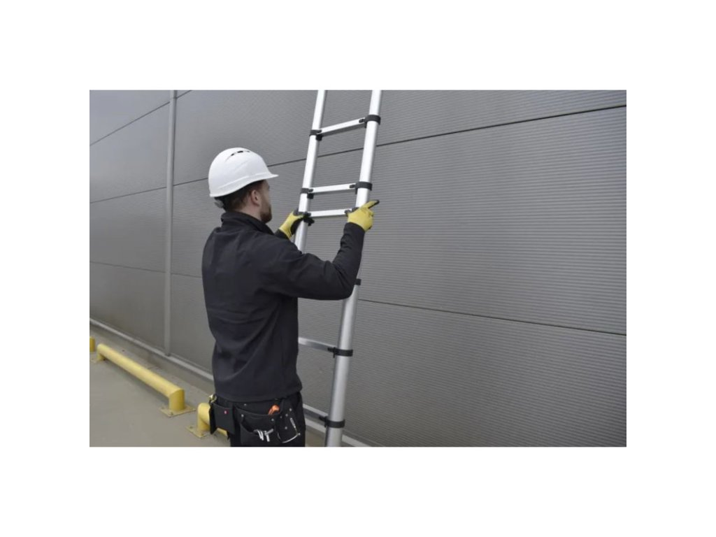 Pracovní výška žebříku se vztahuje k nejvyšší úrovni, kterou můžete dosáhnout, když na něm stojíte. U teleskopického žebříku určuje pracovní výška maximální výšku, které lze dosáhnout při úplném vysunutí a zajištění žebříku.