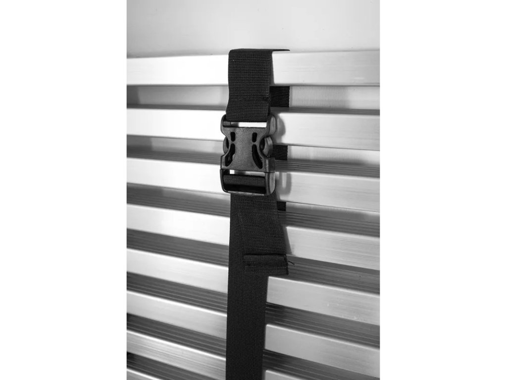 Integrovaný ergonomický úchyt pro snadné přenášení a speciální bezpečnostní popruh zabraňují nechtěnému rozložení během přepravy.