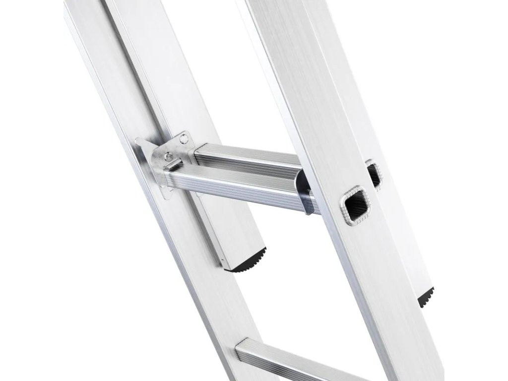 Stabilizační lišta o délce 675 mm s protiskluzovými zakončeními zajišťuje, že se žebřík nehýbe ani na nerovném povrchu.