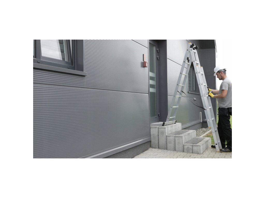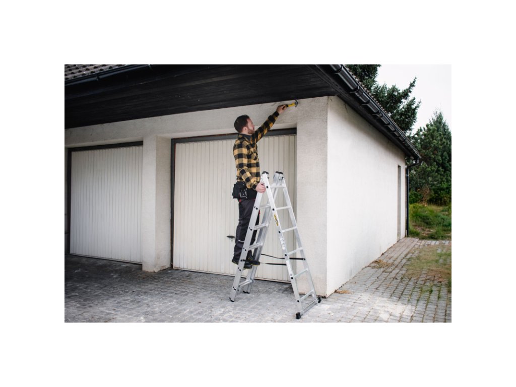 Je možné jej používat ve více polohách – jako klasický opěrný žebřík, volně stojící variantu nebo dokonce přizpůsobit pro práci na schodišti.