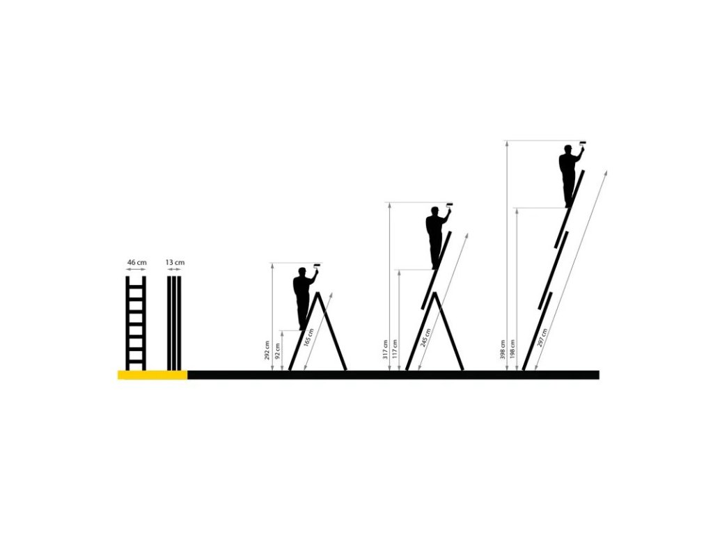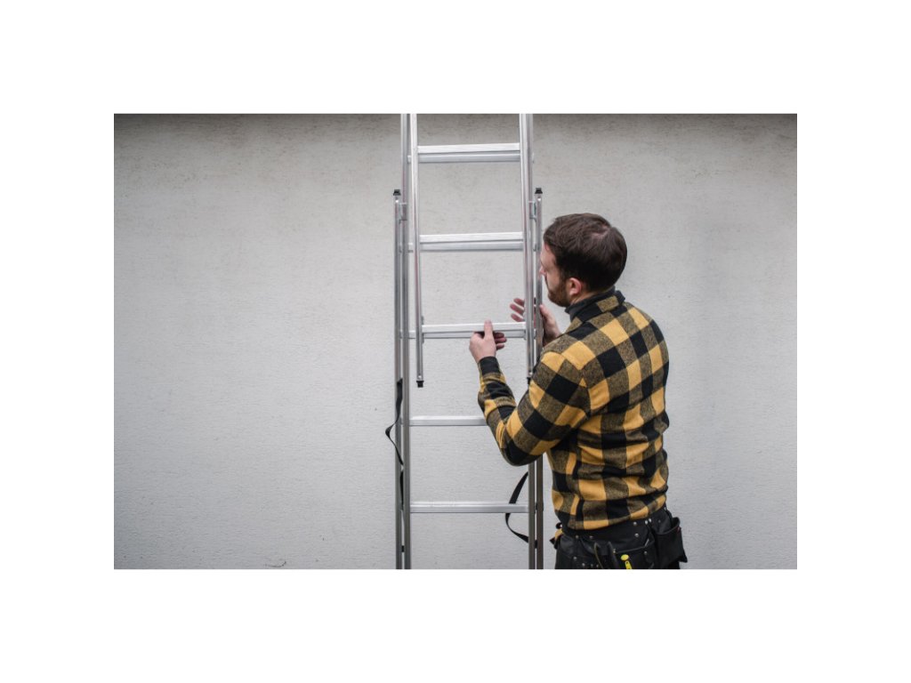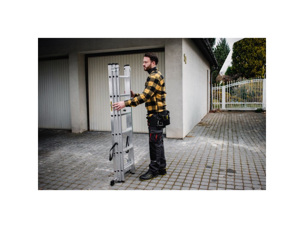 - Multifunkční provedení 3v1 – lze používat opřený, samostatně stojící nebo jako výsuvný žebřík