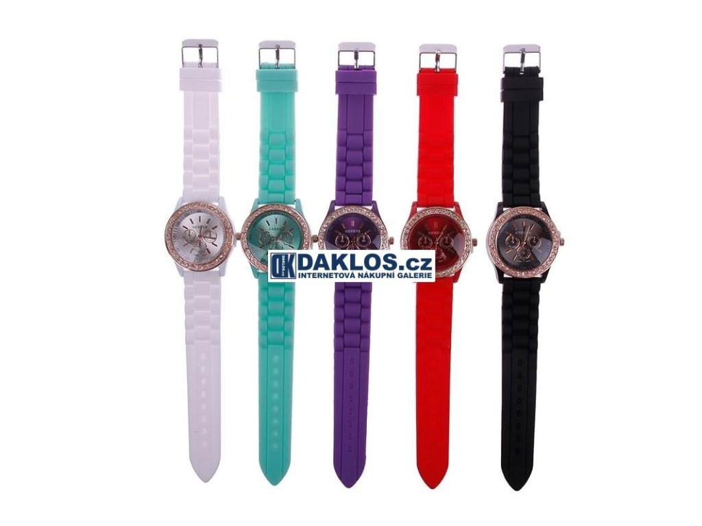 Hodinky GENEVA s čirými kamínky v 5 barevných variantách