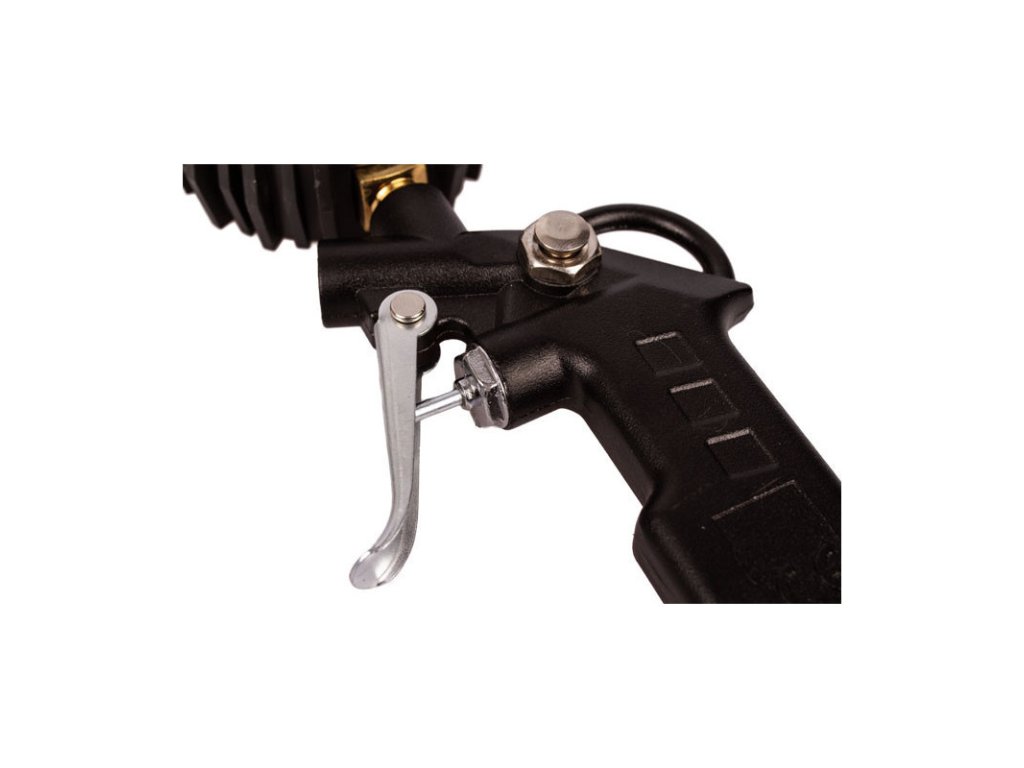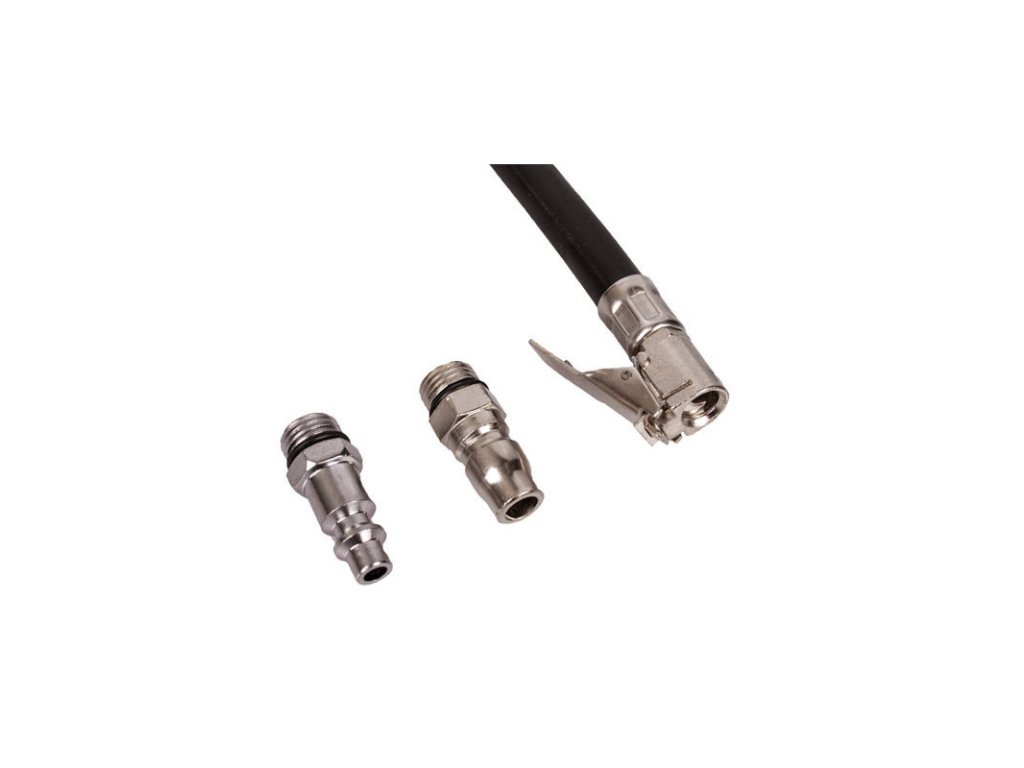 Rukojeť je opatřena ovládací páčkou pro přesné plnění pneumatik a výpustným tlačítkem pro snadné upuštění vzduchu.