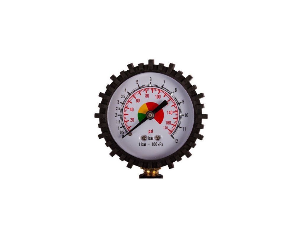 Rozsah měření: Manometr čte hodnoty 0-12 barů / 0-170 psi