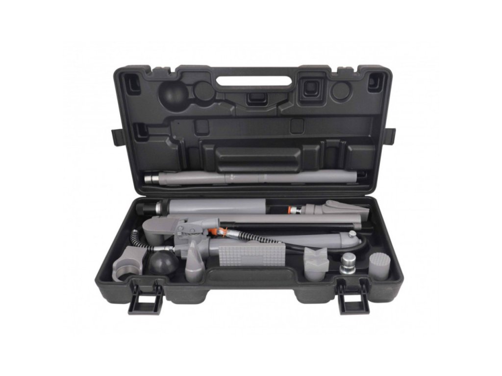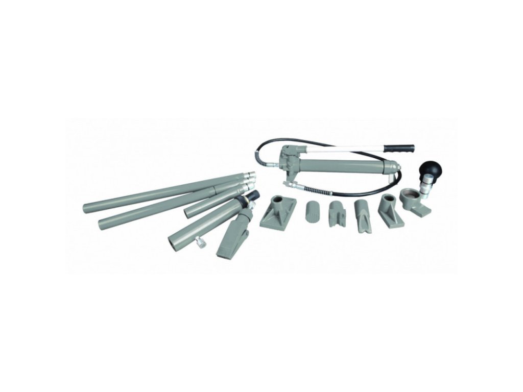 Tato přenosná sada uložená v plastovém kufru s kolečky se skládá z hydraulického válce a 13ti dílů příslušenství. Rozpínací síla pumpy je 10 tun a zdvih pístu 150 mm.