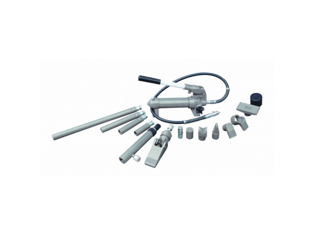 Tato přenosná sada uložená v plastovém kufru se skládá z hydraulického válce a 14ti dílů příslušenství. Rozpínací síla pumpy je 4 tuny a zdvih pístu 120 mm.