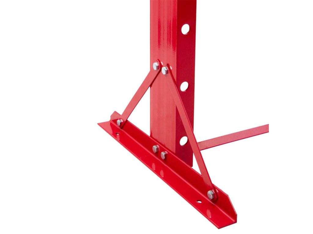 Konstrukce je tvořena stabilním svařovaným rámem se širokou základnou, která zajišťuje bezpečnost a pevnost při práci.