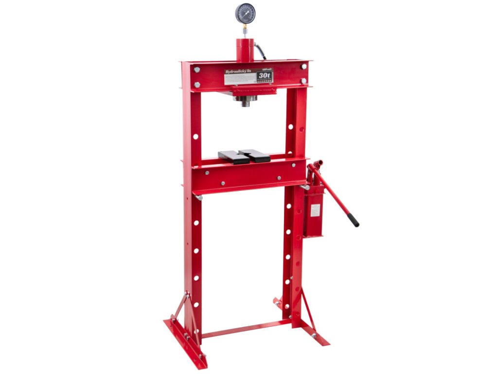 Výkonný hydraulický lis určený pro těžké lisovací práce v autoservisech i průmyslových provozech.