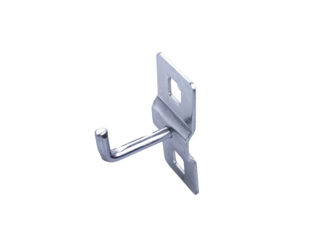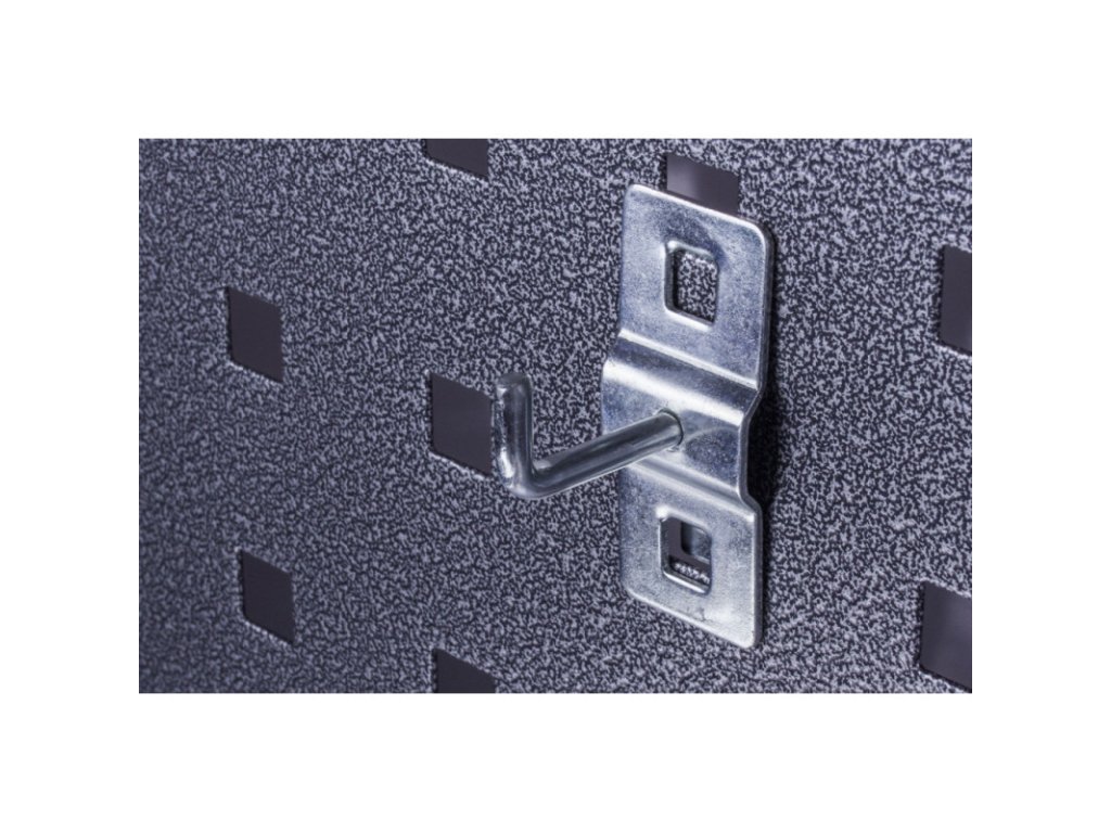 Jednoduchý hák dlouhý 35 mm je určen pro děrované desky s roztečí 38 x 38 mm. Připevněním na perforovaný panel lze rozšířit úložný prostor také pro sestavy dílenského nábytku, dílenské vozíky s nářadím i bez nářadí, pracovní stoly i policové regály.