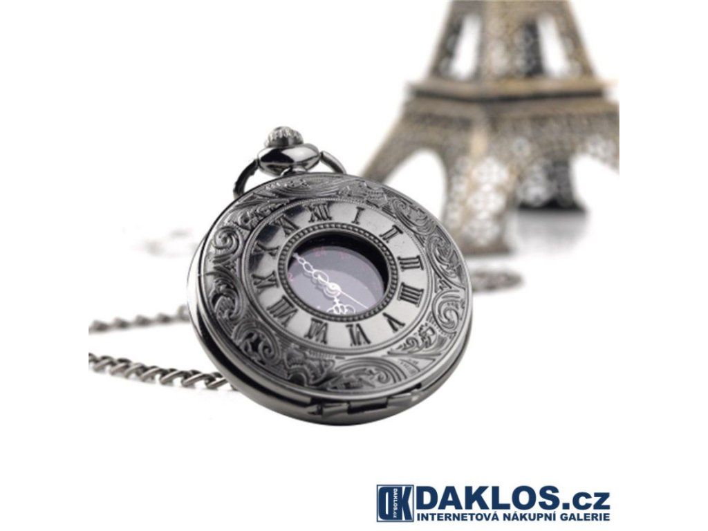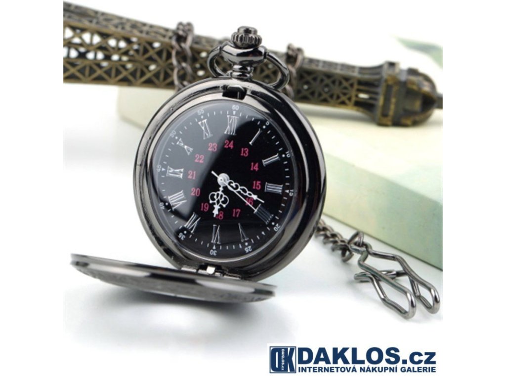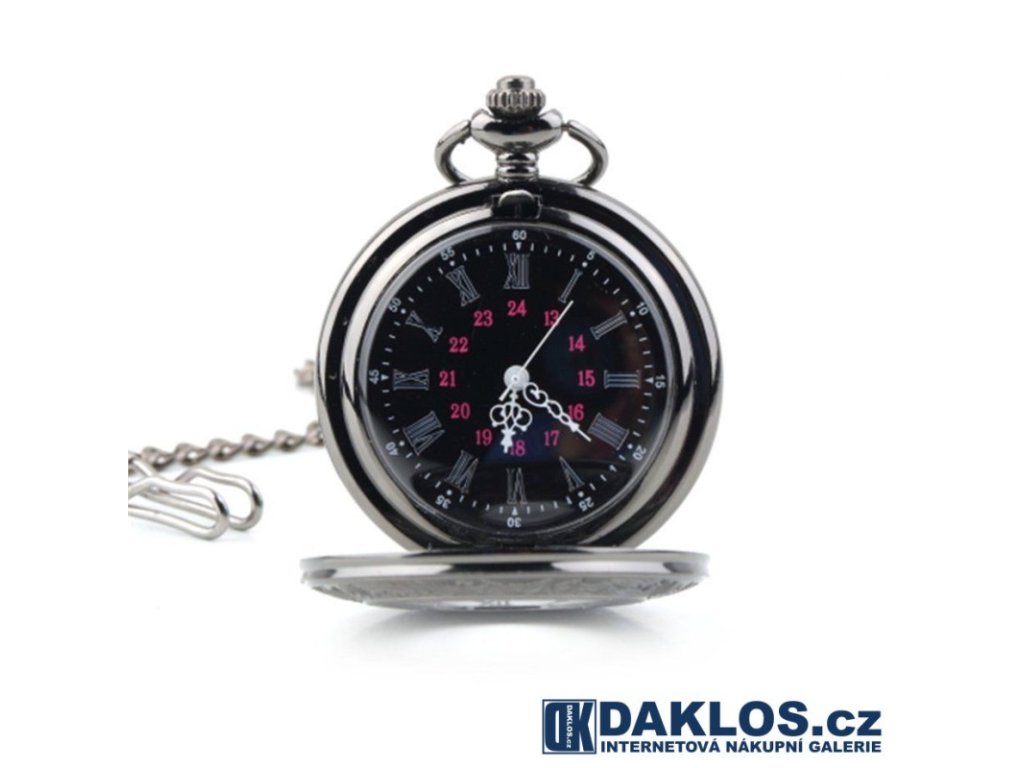 Kapesní přívěskové hodinky s černým pozadím