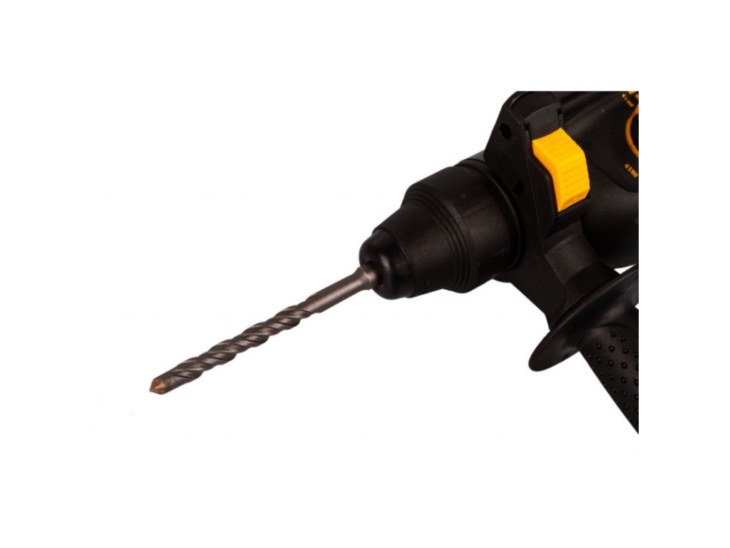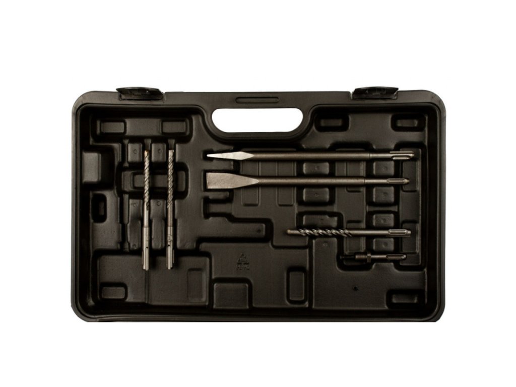 Vrtačka, společně s vrtáky, klíčovým sklíčidlem, dláty, přídavnou rukojetí je uložena v plastovém kufru.