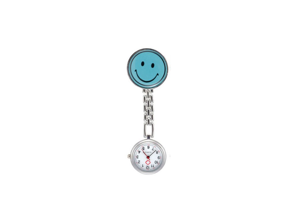Kovové připínací kapesní hodinky se smajlíkem nejen pro zdravotní sestru - Modrá