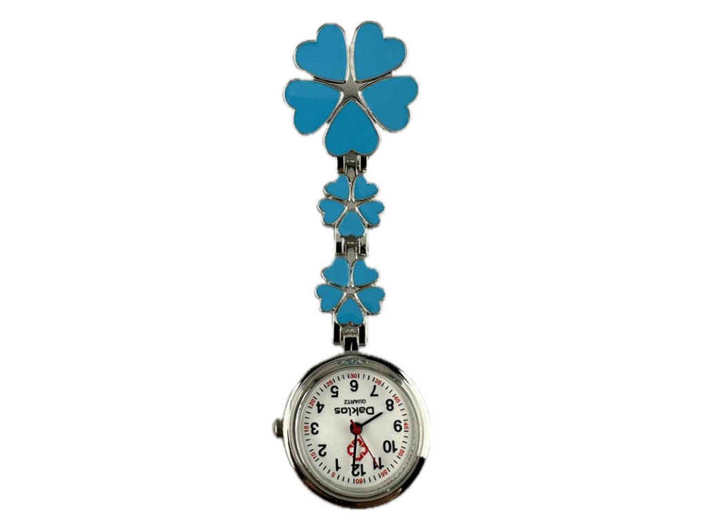 Kovové připínací kapesní hodinky se srdíčky nejen pro zdravotní sestru - modré