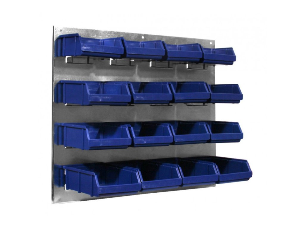 - Kovová deska organizéru na šroubky o rozměru (š x v x h) 558 x 458 x 185 mm.