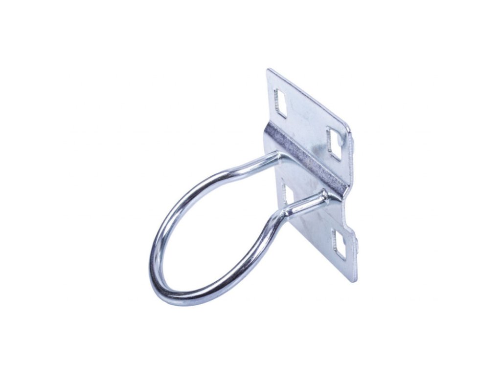 Kruhový hák je určen pro děrované desky s roztečí 38 x 38 mm. Připevněním na perforovaný panel lze rozšířit úložný prostor také pro sestavy dílenského nábytku, dílenské vozíky s nářadím i bez nářadí, pracovní stoly i policové regály.