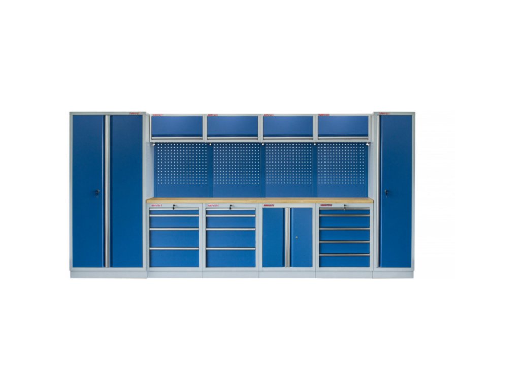 Dílenský nábytek PROFI BLUE s dřevěnou deskou zaujme moderním a profesionálním vzhledem. Kombinace modré RAL 5023 a šedé RAL 7035 barvy se bude vyjímat v každé garáži i dílně. Sestava nábytku v sobě skrývá dostatečné množství úložného prostoru pro vaše nářadí, autotechniku i dílenské vybavení. V kombinaci s bytelnou pracovní deskou získáte multifunkční stěnu, se kterou vám půjde práce od ruky ve všech směrech. Jednotlivé komponenty jsou plně konfigurovatelné, sestavu je možné dle vašich potřeb rozšířit o další skříně, regály i ponk.Sestava nábytku MTGS1300A5