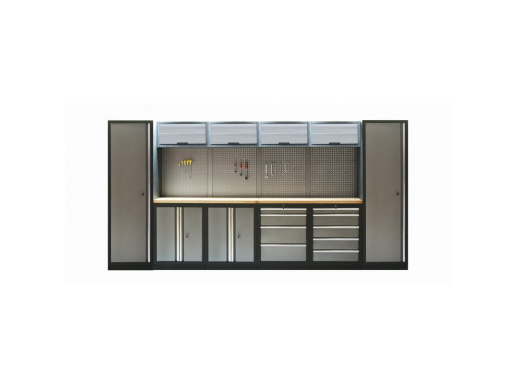 Dílenský nábytek PROFI GREY s dřevěnou deskou zaujme moderním a profesionálním vzhledem. Kombinace kladívkové šedé a černé RAL 9004 se bude vyjímat v každé garáži i dílně. Sestava nábytku v sobě skrývá dostatečné množství úložného prostoru pro vaše nářadí, autotechniku i dílenské vybavení. V kombinaci s bytelnou pracovní deskou získáte multifunkční stěnu, se kterou vám půjde práce od ruky ve všech směrech. Jednotlivé komponenty jsou plně konfigurovatelné, sestavu je možné dle vašich potřeb rozšířit o další skříně, regály i ponk.Sestava nábytku TGS1300AA9