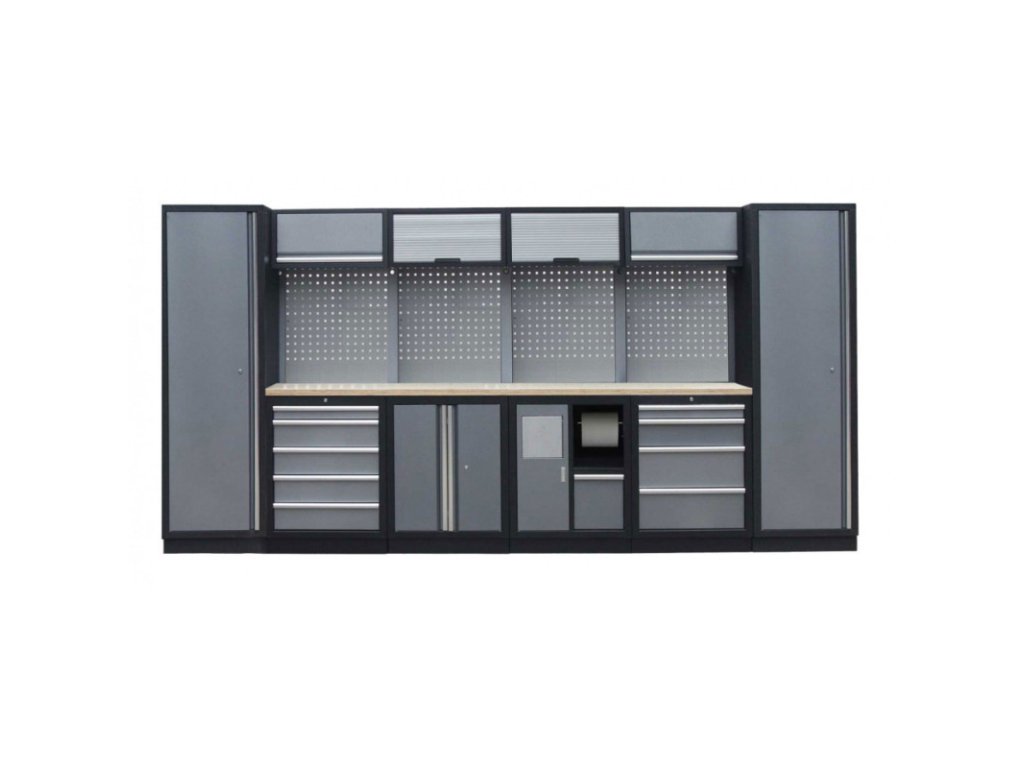 Dílenský nábytek PROFI GREY s dřevěnou deskou zaujme moderním a profesionálním vzhledem. Kombinace kladívkové šedé a černé RAL 9004 se bude vyjímat v každé garáži i dílně. Sestava nábytku v sobě skrývá dostatečné množství úložného prostoru pro vaše nářadí, autotechniku i dílenské vybavení. V kombinaci s bytelnou pracovní deskou získáte multifunkční stěnu, se kterou vám půjde práce od ruky ve všech směrech. Jednotlivé komponenty jsou plně konfigurovatelné, sestavu je možné dle vašich potřeb rozšířit o další skříně, regály i ponk.Sestava nábytku TGS1301AB