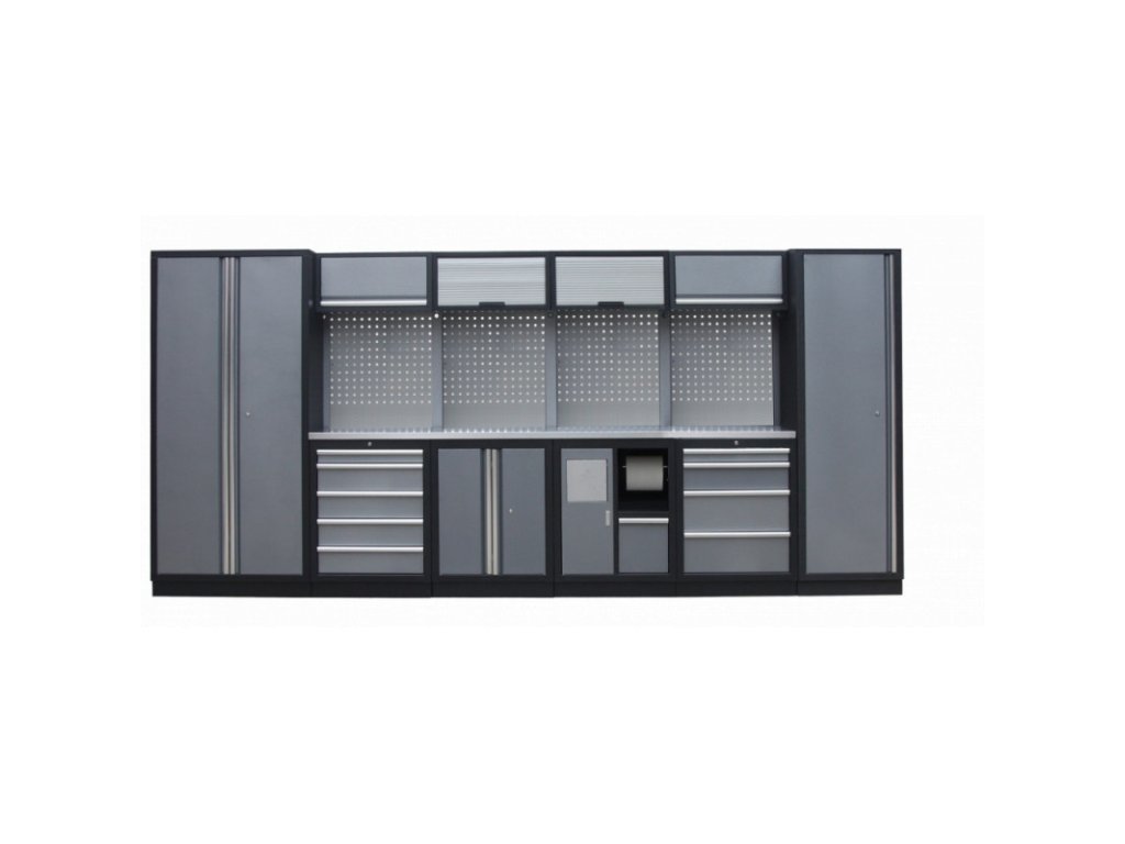 Dílenský nábytek PROFI GREY s nerezovou deskou zaujme moderním a profesionálním vzhledem. Kombinace kladívkové šedé a černé RAL 9004 barvy se bude vyjímat v každé garáži i dílně. Sestava nábytku v sobě skrývá dostatečné množství úložného prostoru pro vaše nářadí, autotechniku i dílenské vybavení. V kombinaci s bytelnou pracovní deskou získáte multifunkční stěnu, se kterou vám půjde práce od ruky ve všech směrech. Jednotlivé komponenty jsou plně konfigurovatelné, sestavu je možné dle vašich potřeb rozšířit o další skříně, regály i ponk.Sestava nábytku TGS1301AU