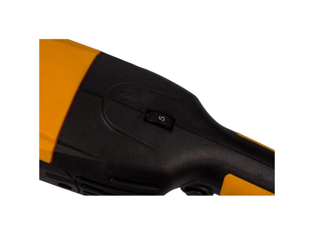 Rukojeť je osazena spouští s regulací otáček a aretací pro stálý chod. Snadno si tak upravíte rychlost otáček během práce. Nastavit můžete až 6 stupňů rychlostí v rozmezí 600 až 3200 ot./min.
