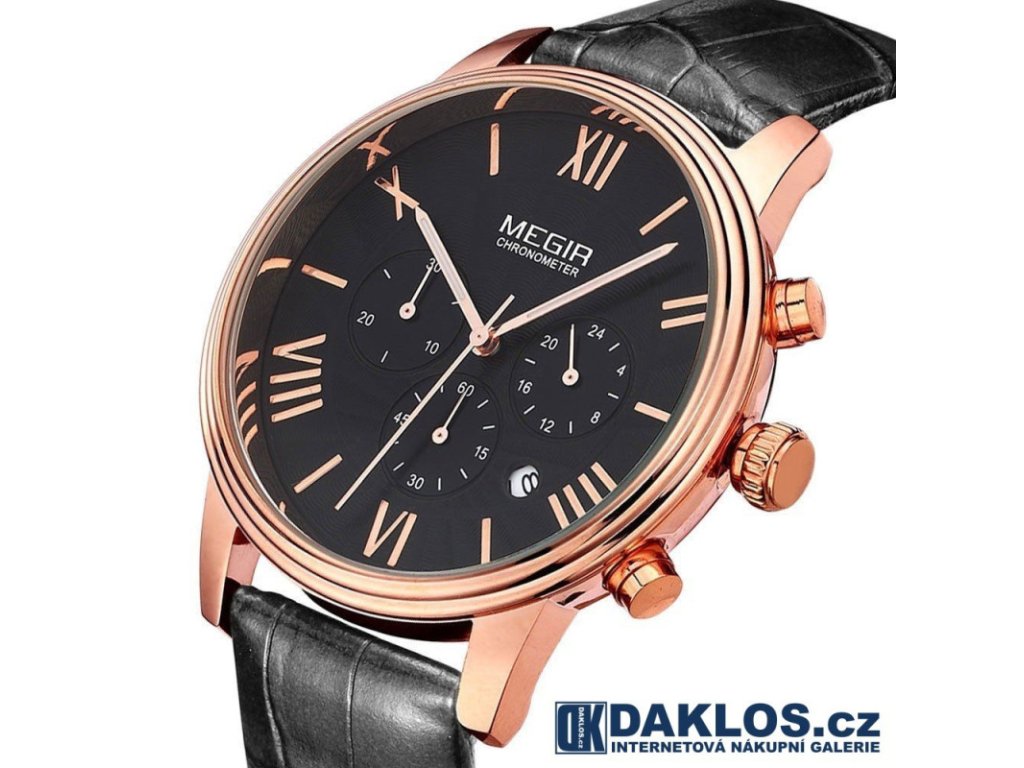 Luxusní hodinky MEGIR ve zlato černém provedení