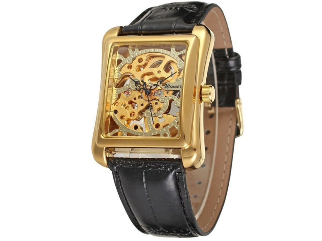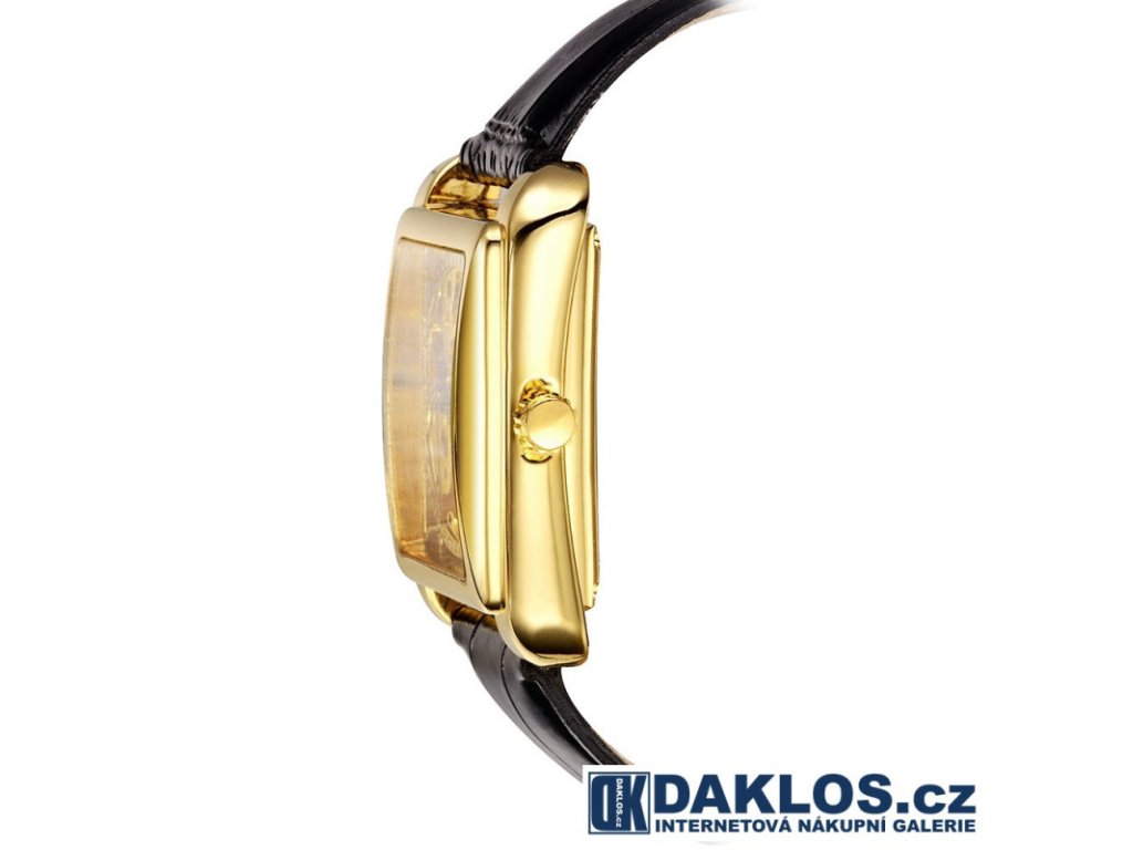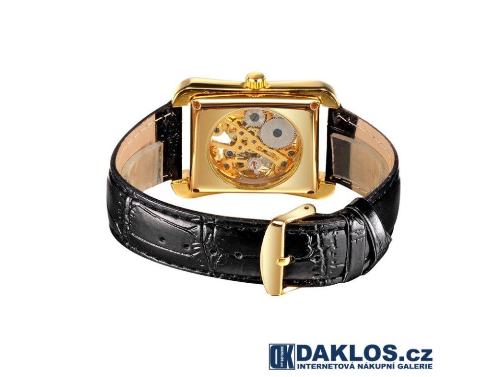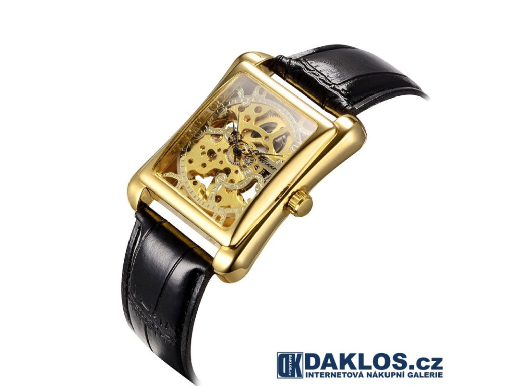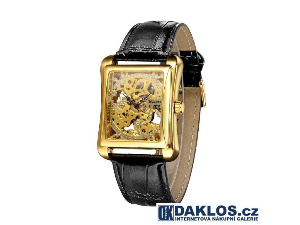 Luxusní hodinky WINNER s průhledným ciferníkem ve zlato černém hranatém provedení - automatické