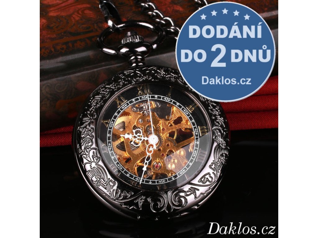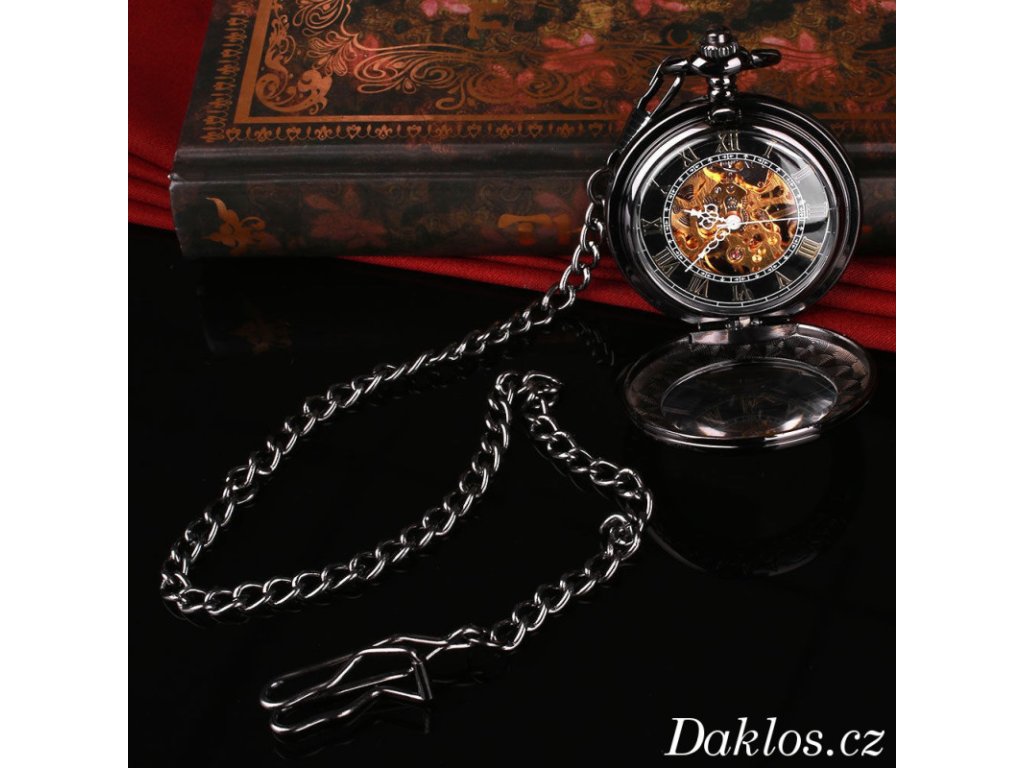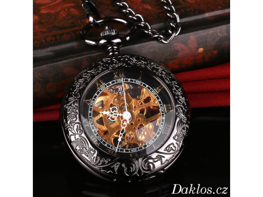 Luxusní kapesní hodinky s průhledným ciferníkem a římskými číslicemi - natahovací