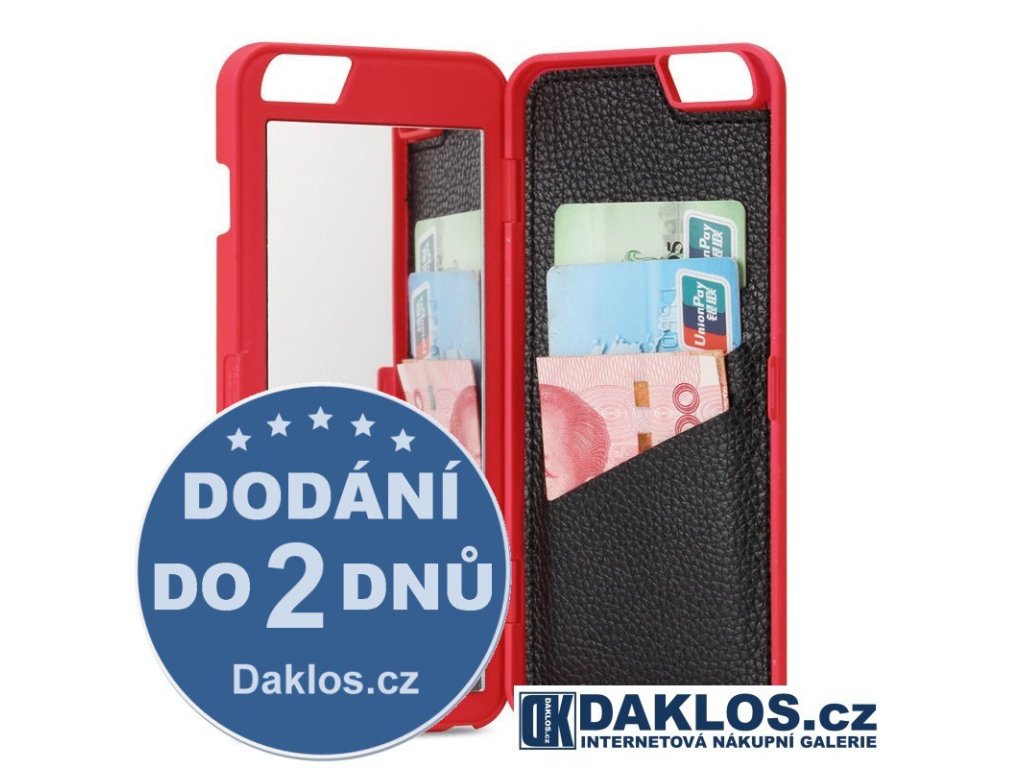 Luxusní kryt s zrcátkem a pouzdrem na karty pro Apple iPhone 6 6S - červený
