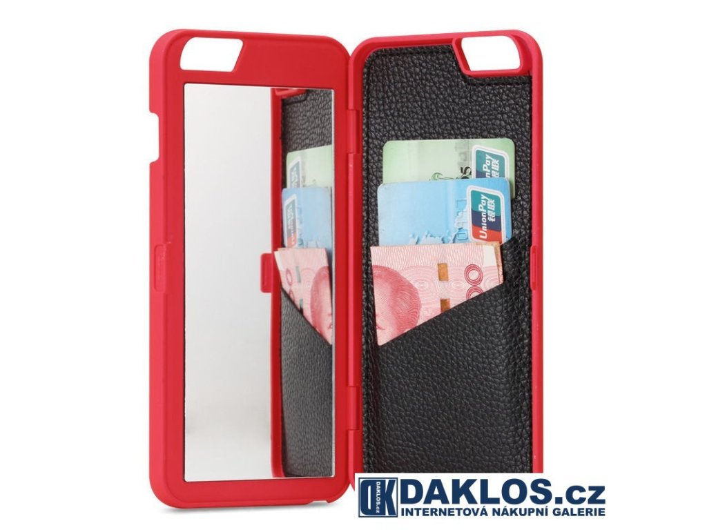 Luxusní kryt s zrcátkem a pouzdrem na karty pro Apple iPhone 6 Plus 6S Plus - červený