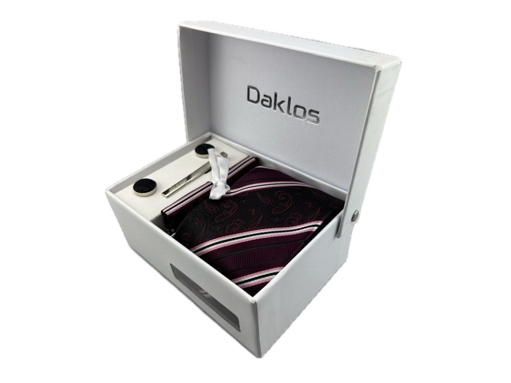 Luxusní set bordová elegance - Kravata, kapesníček, manžetové knoflíčky, kravatová spona v dárkové krabičce