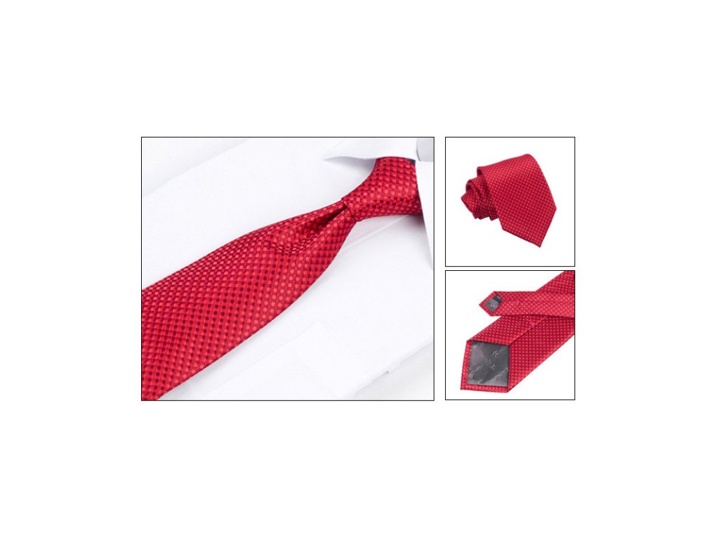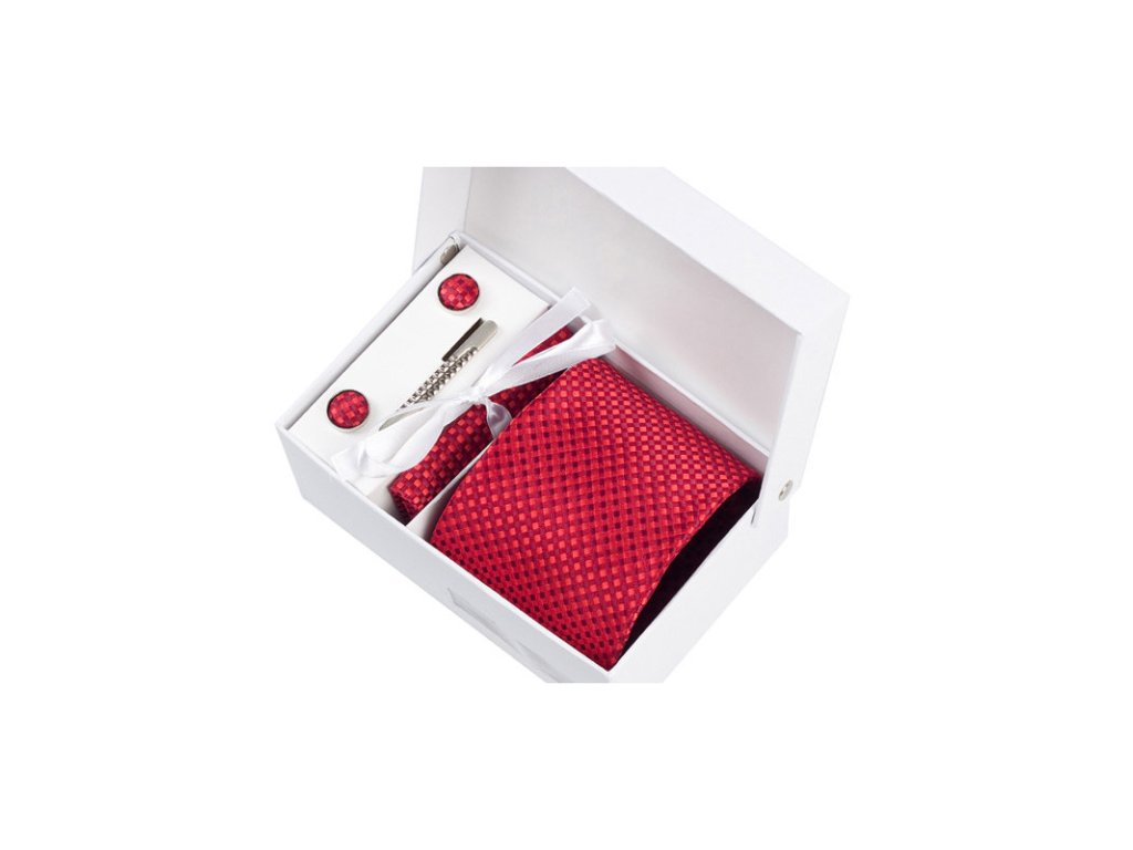 Luxusní set červený kostičkovaný - Kravata, kapesníček do saka, manžetové knoflíčky, kravatová spona v dárkovém balení