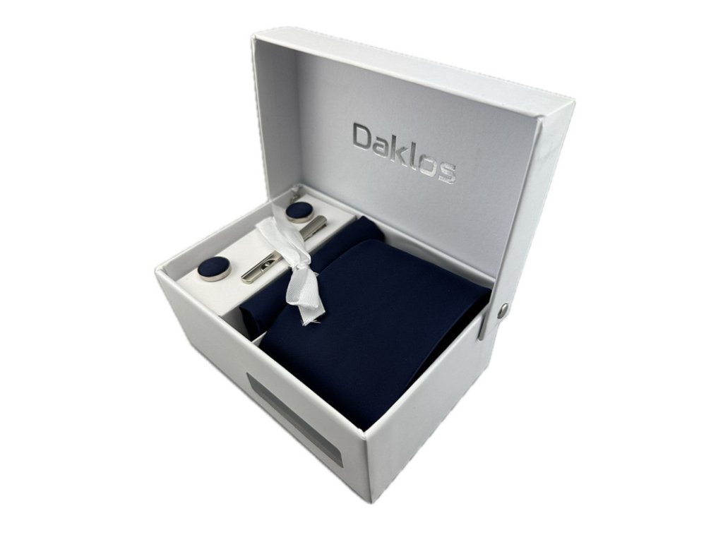 Luxusní set elegantně tmavě modrá - Kravata, kapesníček do saka, manžetové knoflíčky, kravatová spona v dárkovém balení
