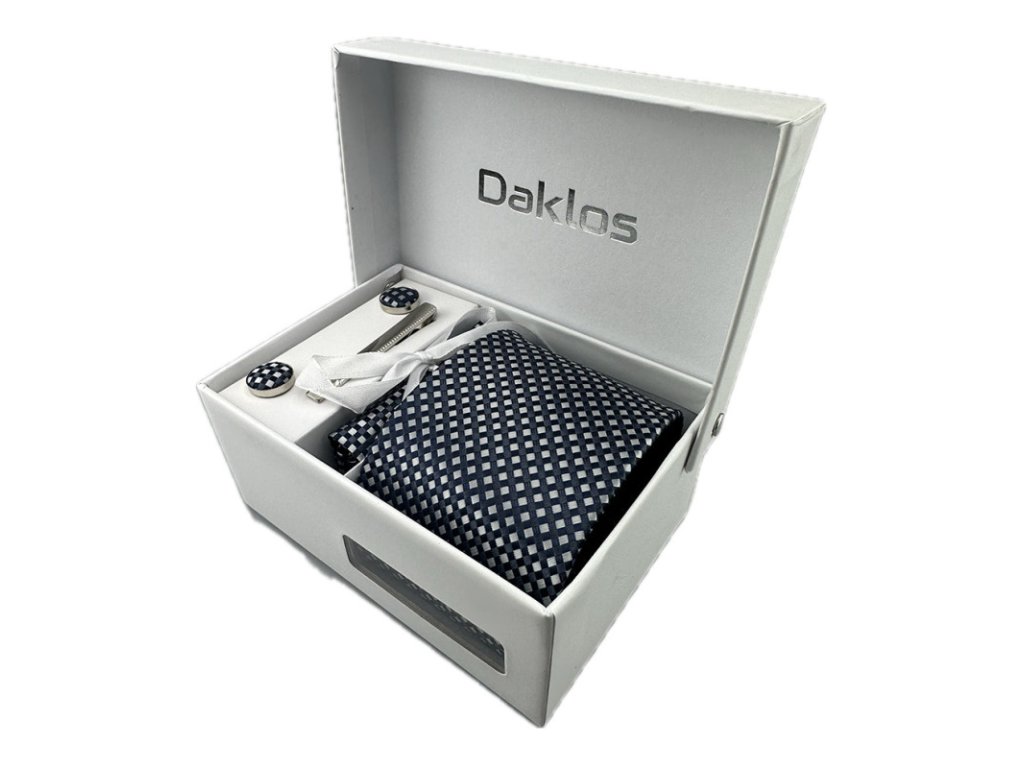 Luxusní set stříbrno černý kostičkovaný - Kravata, kapesníček do saka, manžetové knoflíčky, kravatová spona v dárkovém balení
