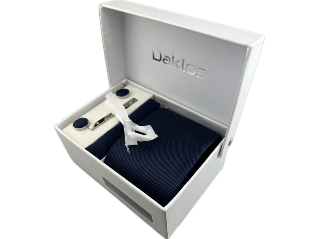 Luxusní set tmavě modrý s proužkovaným vzorem - Kravata, kapesníček, manžetové knoflíčky, kravatová spona v dárkovém balení