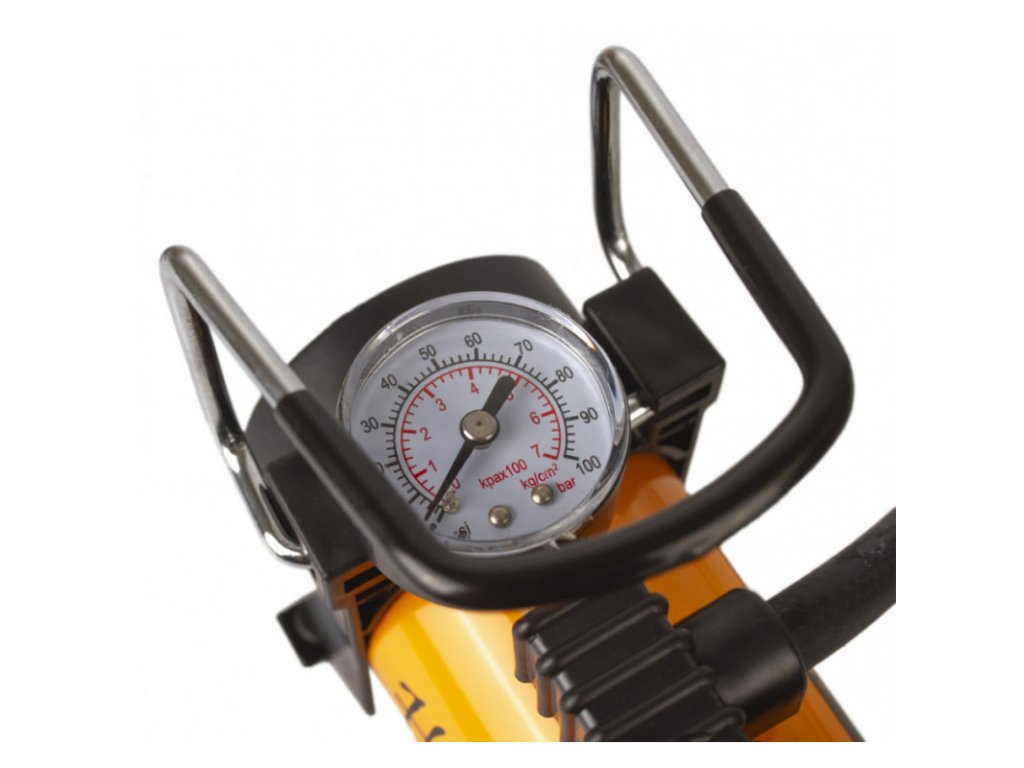 Na kompresoru se nachází kovové madlo pro pohodlné přenášení a barometr, díky kterému lze snadno pneumaticky dohustit na požadovanou hodnotu a také změřit jejich tlak.