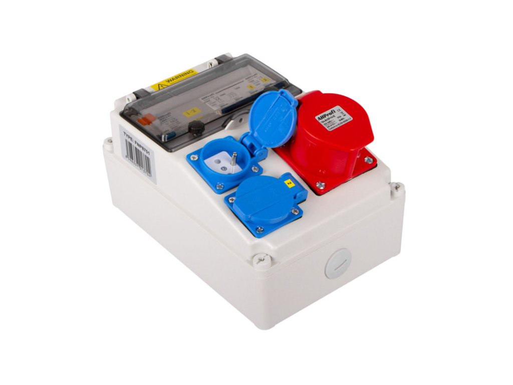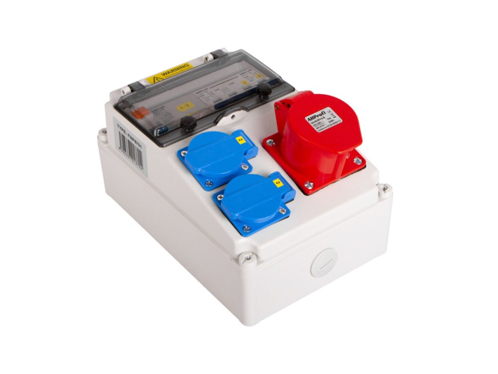 Rozvodná skříň má 2 zásuvky 16 A a zásuvku 16 A 5P.