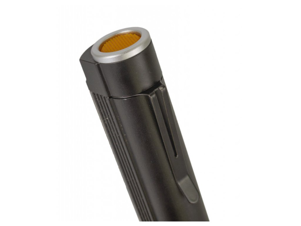 Na jednom konci baterky je oranžové tlačítko, kterým lze svítilnu zapnout. Při jemném promáčknutí můžete měnit funkce svítilny.