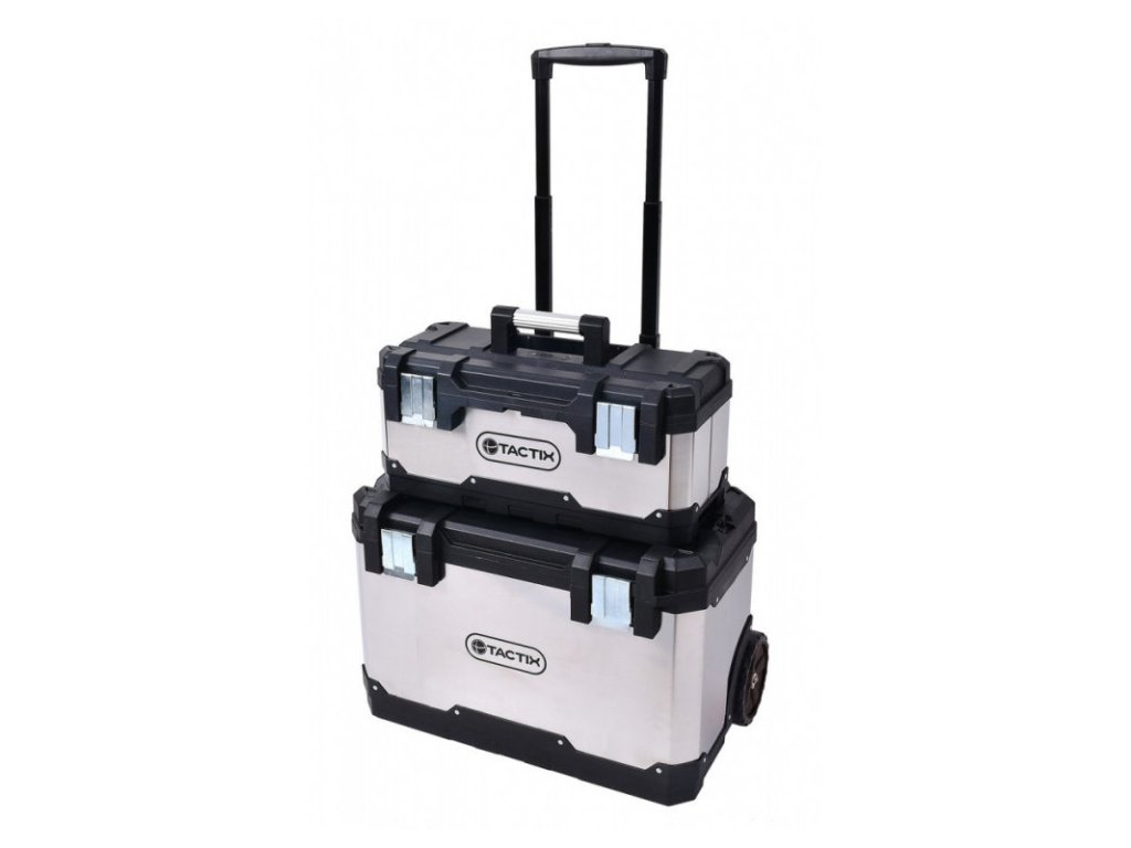 Jedná se o praktické boxy na kolečkách - kufry, kdy jsou 2 nad sebou a tvoří tak větší prostor pro Vaše nářadí. Robustní kolečka zajišťují zvládnutí i horšího terénu.