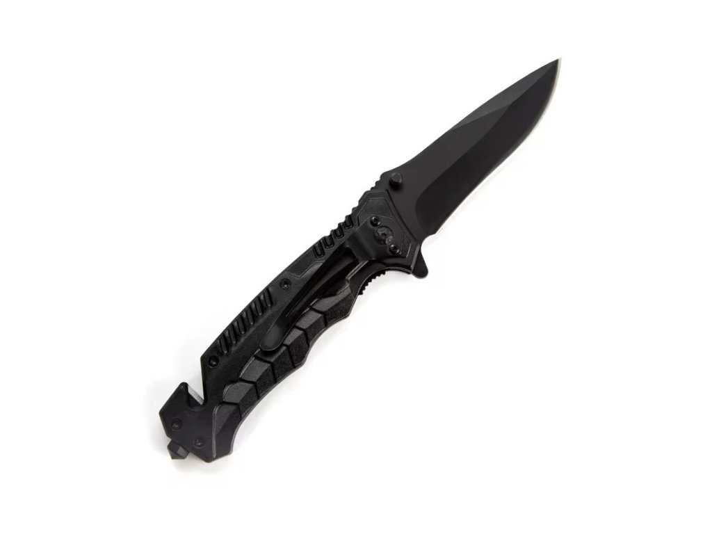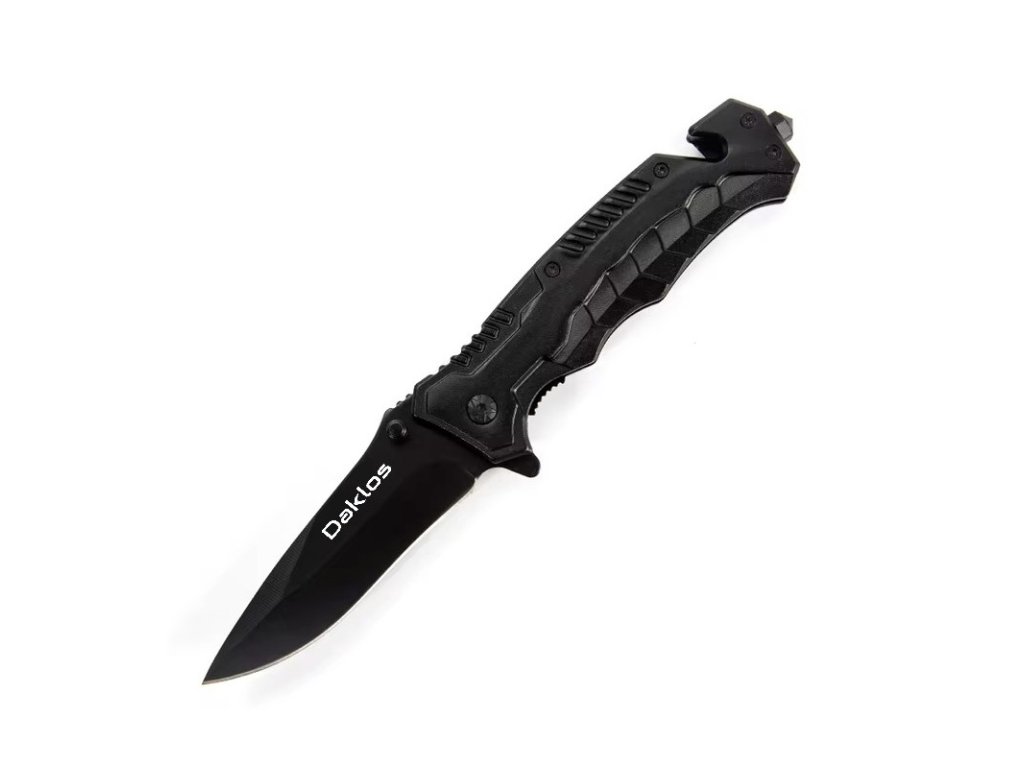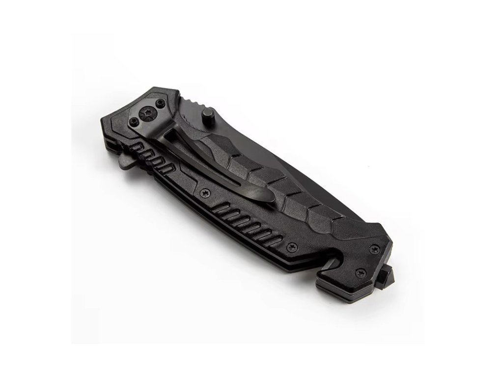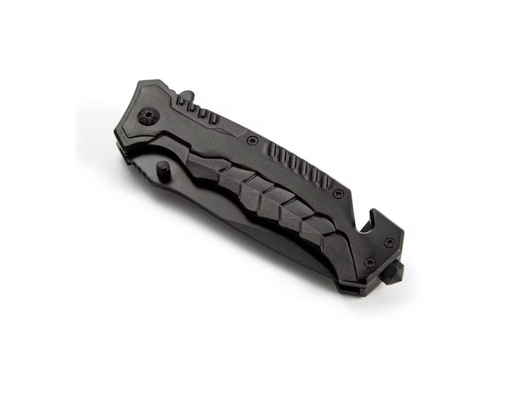 Multifunkční lovecký skládací nůž 4 v 1 s řezákem lana a bezpečnostních pásů, hrotem pro rozbíjení skla a otvírákem lahví