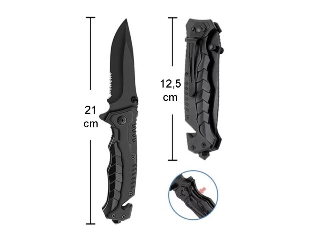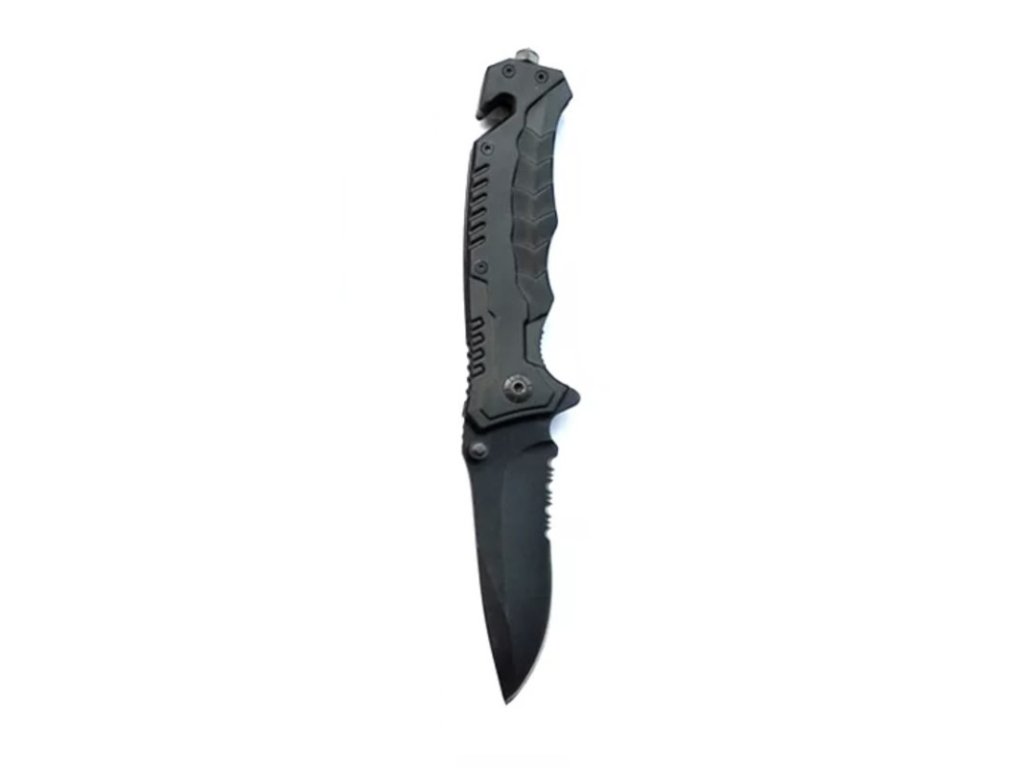 Multifunkční lovecký skládací nůž s řezákem lana a bezpečnostních pásů, hrotem pro rozbíjení skla a otvírákem lahví