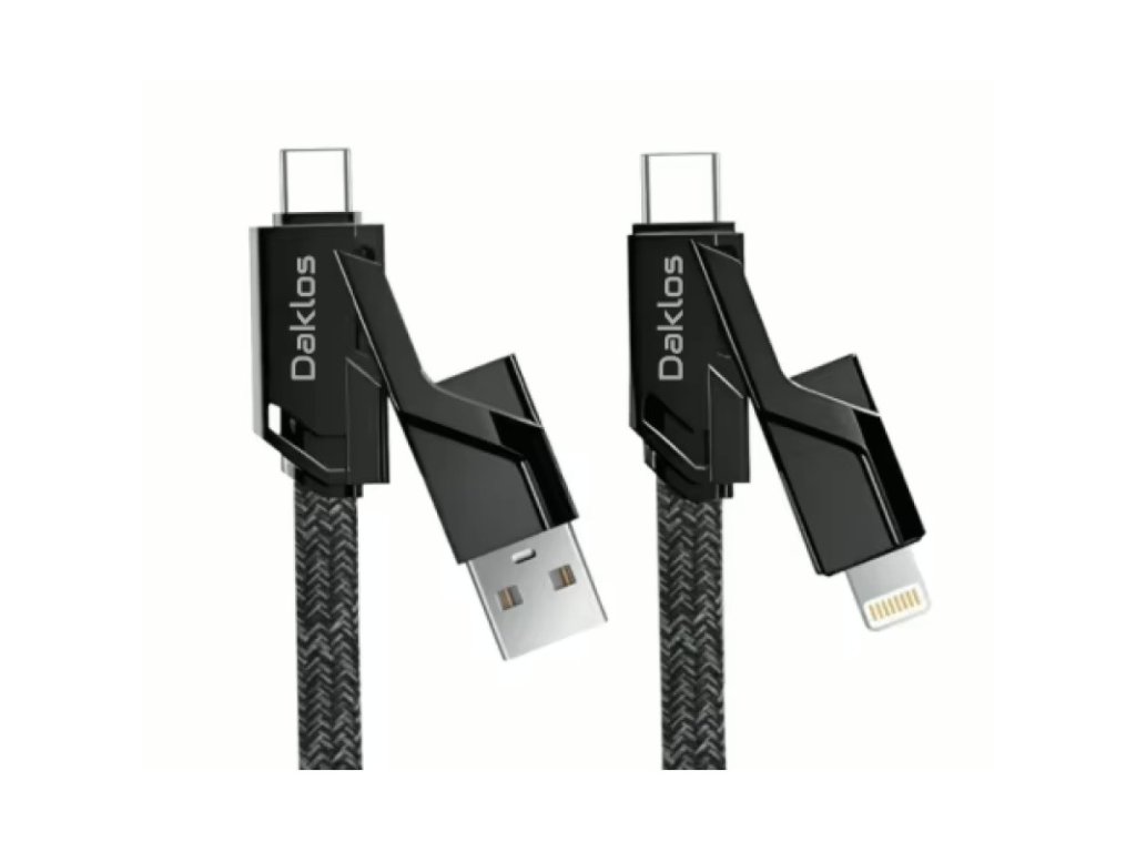 Tento odolný a inovativní nabíjecí kabel značky Daklos je ideální volbou pro uživatele, kteří potřebují univerzální a spolehlivé řešení pro nabíjení a přenos dat. Díky unikátní otočné konstrukci konektorů můžete snadno přepínat mezi různými typy připojení.