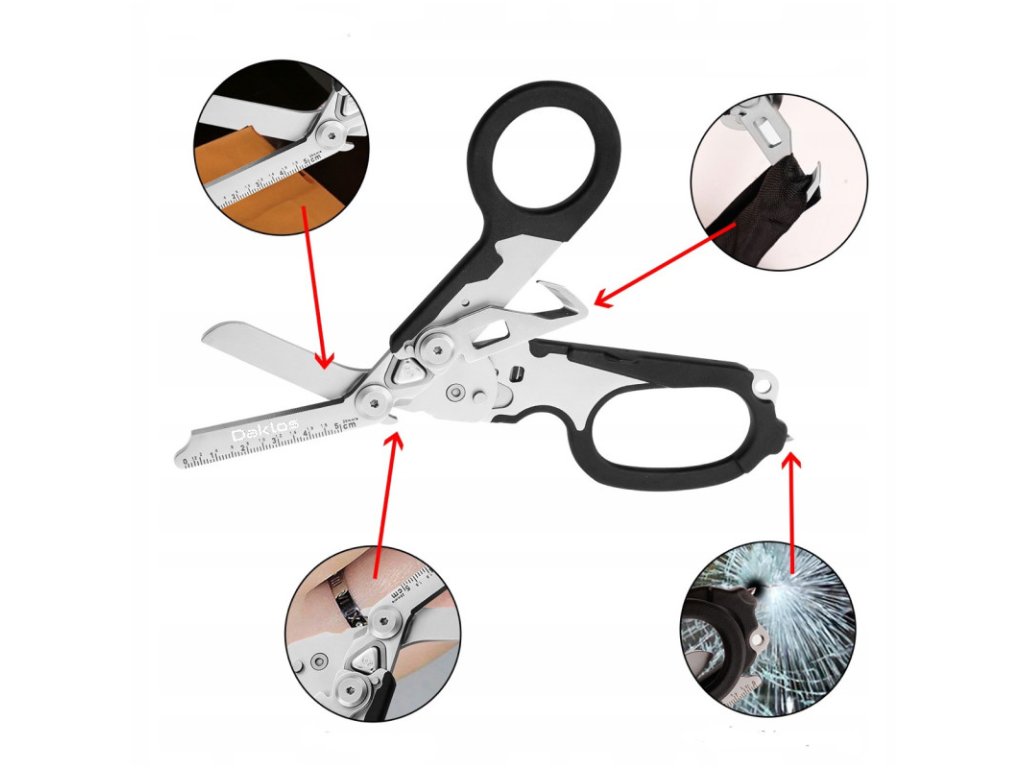 Daklos Multifunkční skládací záchranářské nůžky 6v1 – spolehlivý pomocník pro přežití i každodenní použití