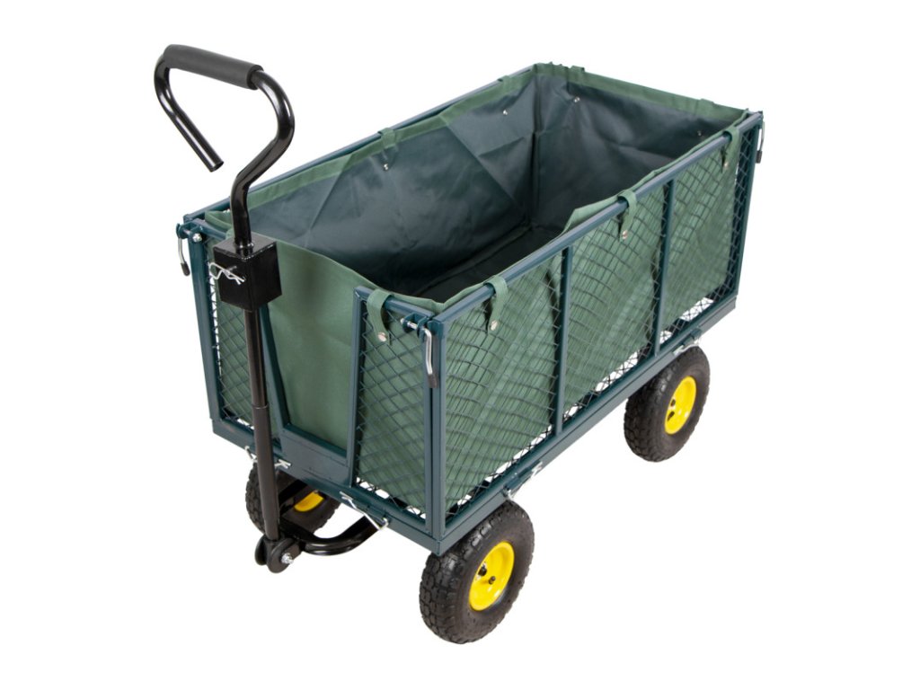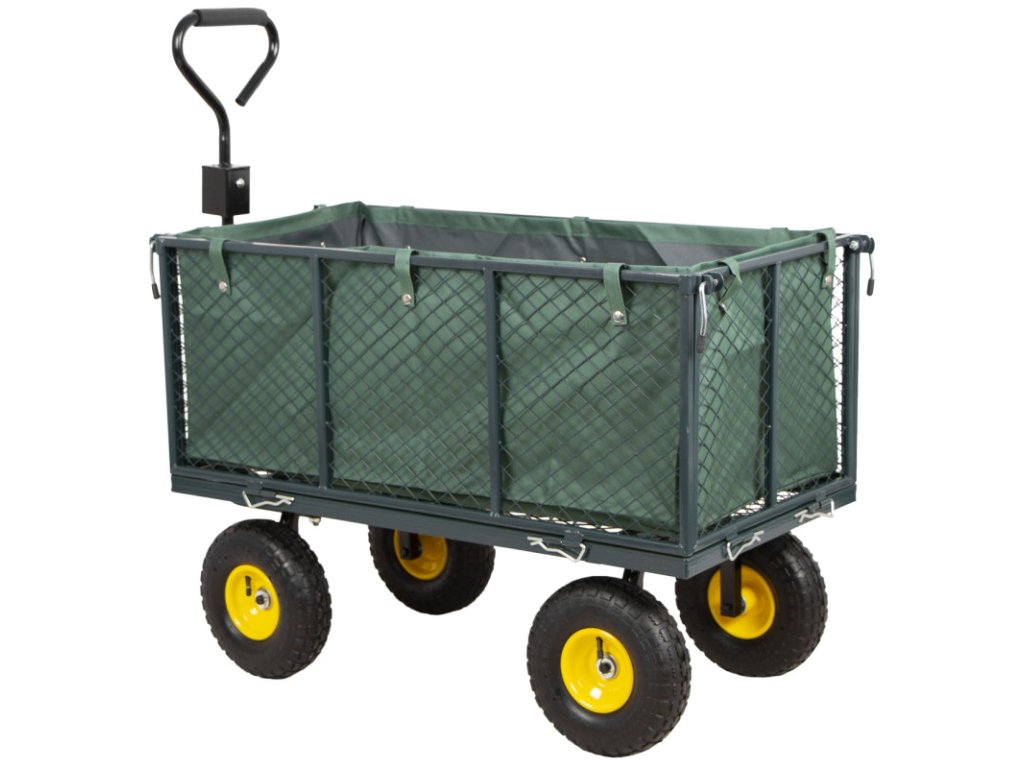 Zahradní vozík vhodný pro přepravu dřeva, trávy, sena nebo zeminy apod. na zahradách nebo okolí domu.