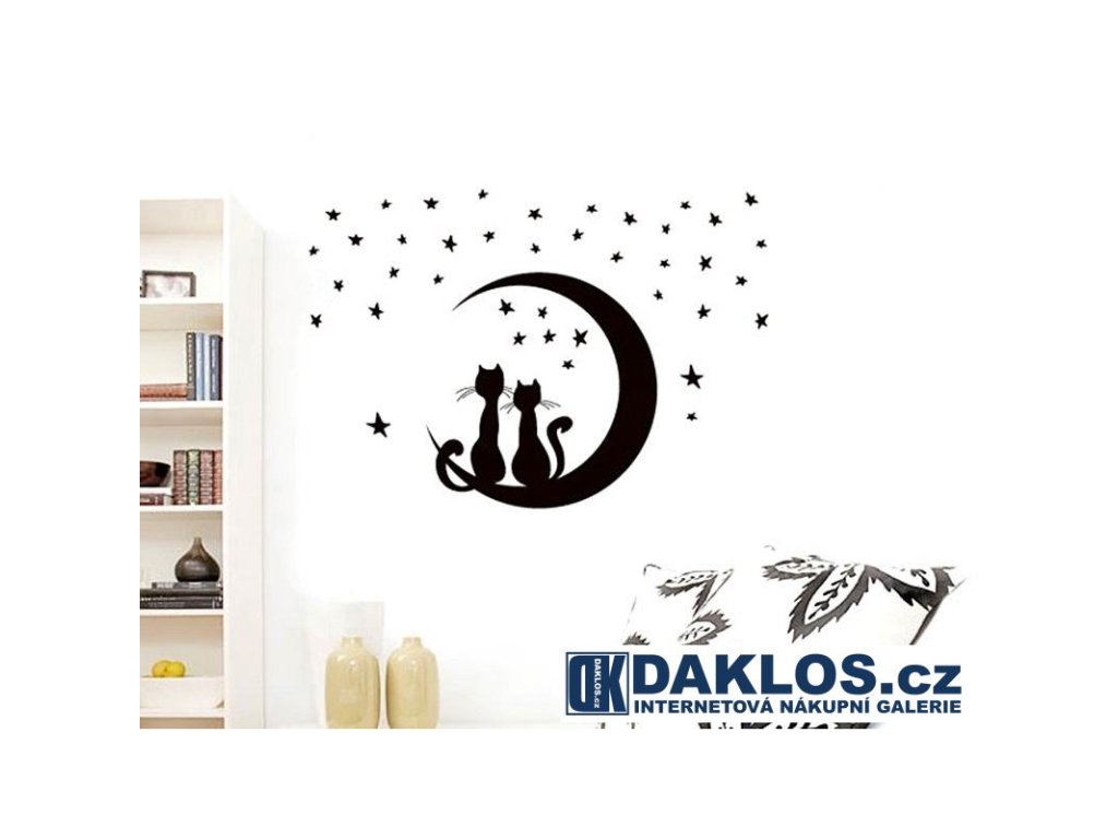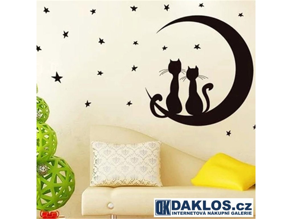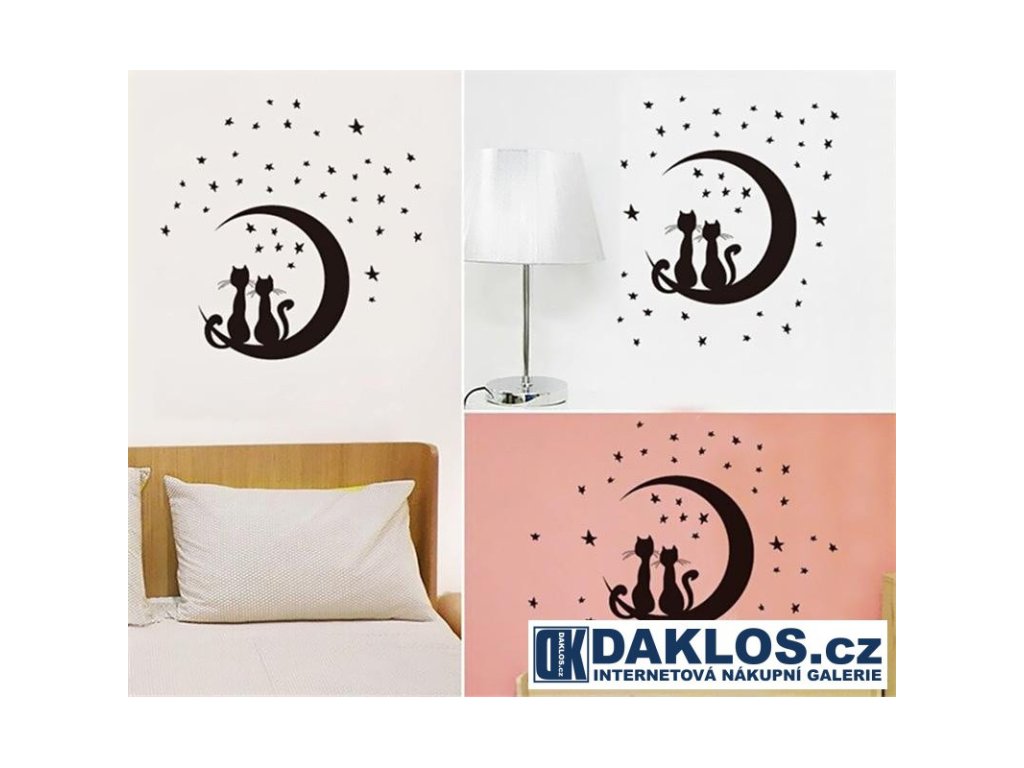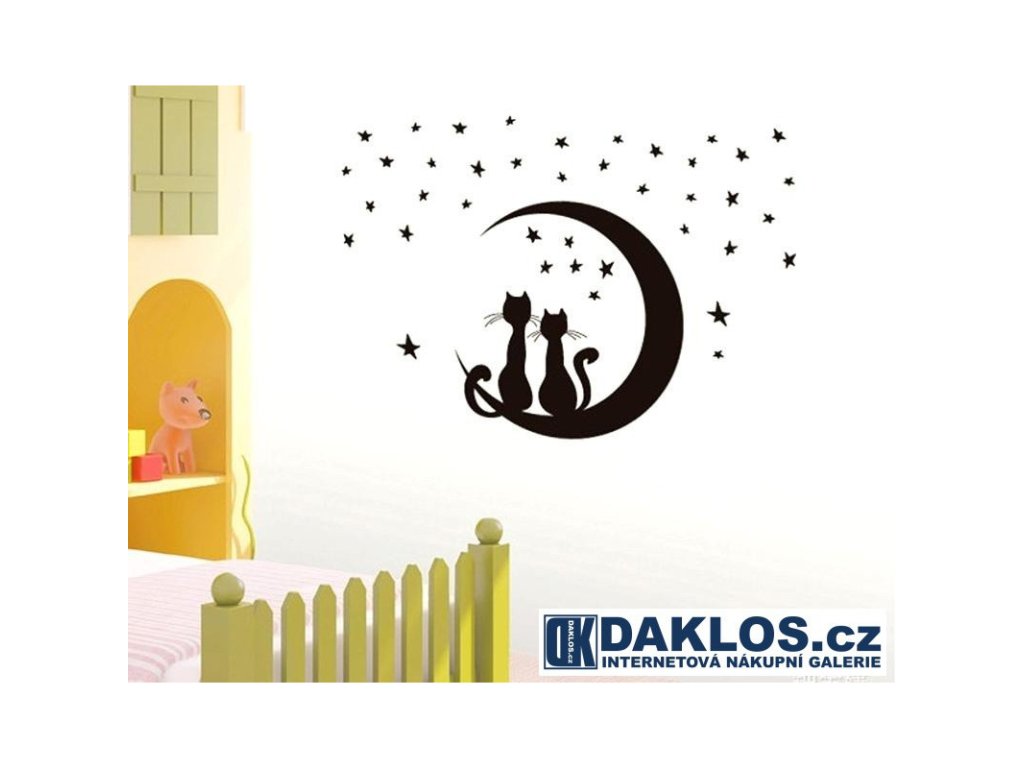 Nálepka / Samolepka na stěnu - Hvězdy / Měsíc / Kočky